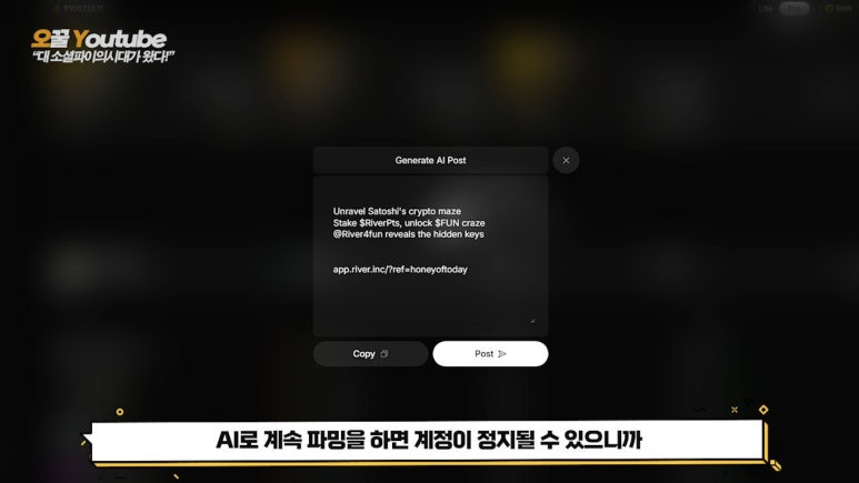 사이트 내에서 ‘Post’를 클릭하면 AI가 포스팅 문구를 자동으로 생성해주긴 하는데, AI로 계속 파밍을 하면 계정이 정지될 수 있으니까 되도록이면 수동으로 작성하시는걸 추천드립니다.
